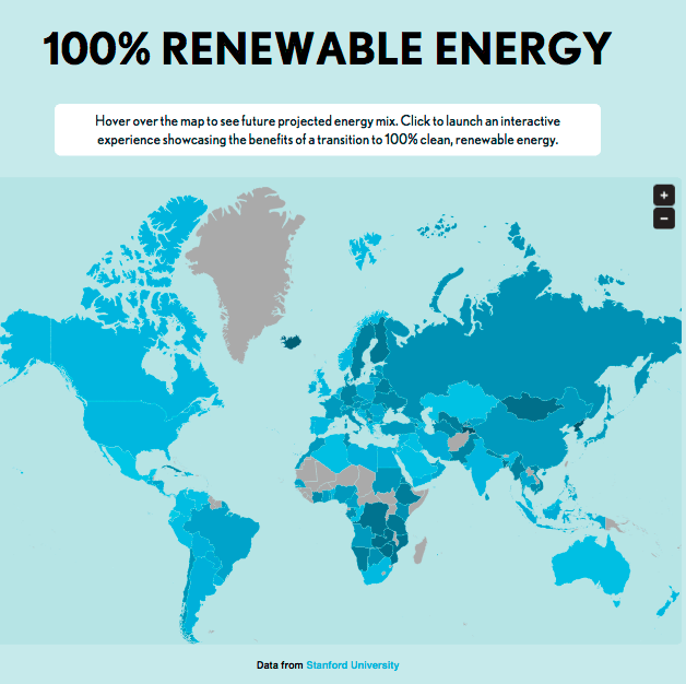 Fast Company‘s Adele Peters reports that according to a new study from the Atmosphere and Energy Program at Stanford University, the world could be powered solely by wind, water, and sunlight in just a few decades.