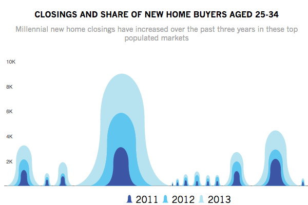Economists are banking on 2015 to be the year leading-edge millennials finally start to stream into the housing market. To get an idea of what changes can be expected if the generation does take the plunge, we’ve gathered data on millennial home buying behavior the past three years in metropolitan statistical areas (MSA) where the 25-34 year-old population is most concentrated.